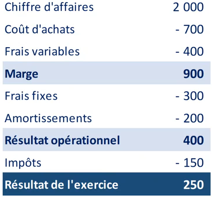 Mode de calcul : Marge brute – frais fixes et variables – amortissements et provisions